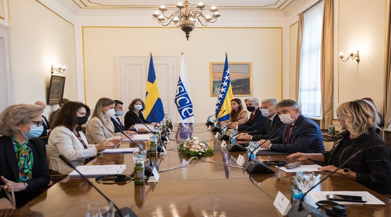 Članovi Predsjedništva BiH Željko Komšić i Šefik Džaferović su izrazili zahvalnost Švedskoj na podršci Bosni i Hercegovini, posebno u reformskim i integracijskim procesima BiH, kao i procesu proširenja. Iskazali su nadu da će Švedska, kao snažan zagovornik proširenja Evropske unije na Zapadni Balkan i kao zemlja koja podržava Bosnu i Hercegovinu na njenom putu ka evropskim integracijama, taj stav ponoviti i na predstojećem Samitu EU – Zapadni Balkan, koji se 6. oktobra 2021. godine održava u Republici Sloveniji.